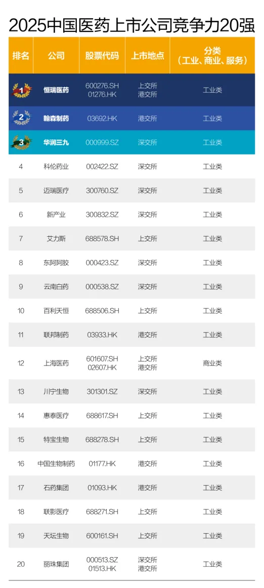 图丨2025中国医药上市公司竞争力20强榜单