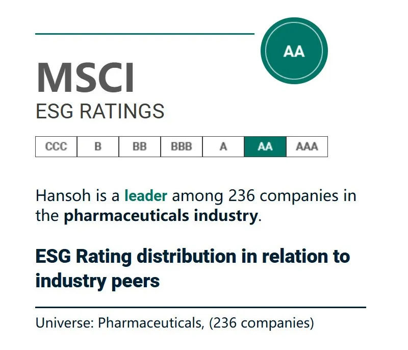 翰森制药连续两年荣获MSCI ESG评级AA级